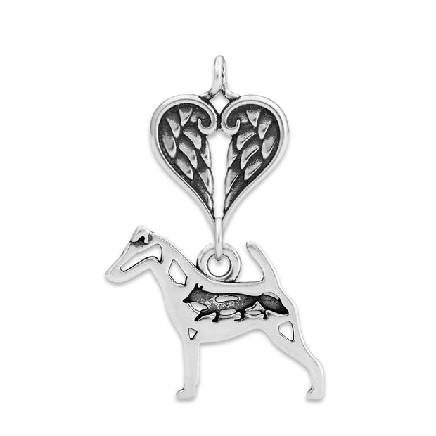 The independent, energetic Smooth Fox Terrier pendant displays the breed in profile with an alert pose harkening back to a time when the nimble breed was used for fox hunting. SFT Sterling Silver jewelry embraces the sleek, lean, symmetrical lines of the beloved dog. The Smooth Fox Terrier charm features an oxidized sprint fox in the center of the dog's body. The V shaped head of the Foxie leads up to small V shaped ears rise then drop forward, giving added dimension to the SFT pendant. The long, lean neck widens slightly at the shoulder, and the smooth line continues on arching gently to the straight forelegs with round feet. A true spit-fire, the Smooth Fox Terrier thick, strong tail carried high, revealing powerful hindquarters that are ready to propel the Fox Terrier forward. Honor the rich heritage of this playful breed by wearing a gleaming Sterling Silver Smooth Fox Terrier pendant when at work or at play.